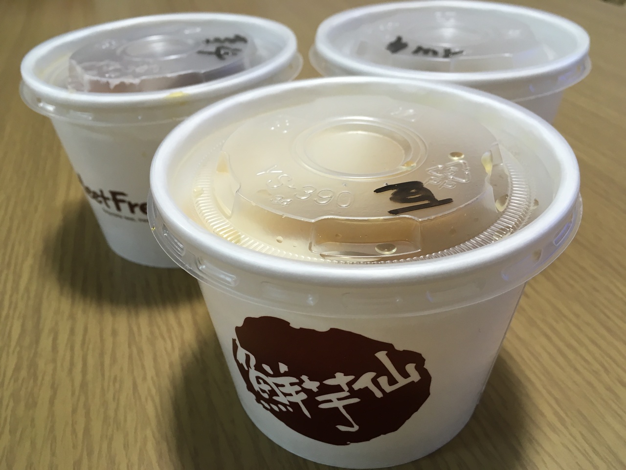 土曜日の午後6時過ぎに来店テイクアウトしました。お客は私しかいませんでした。駅から少し離れているし、駐車スペースもないし、本店は人が少ないのかもしれません。いろいろな組み合わせができるので何を注文して良いか迷ってしまったので、店員さんに聞いた1番人気の仙草オリジナルと2番人気の芋園4号を注文して。豆花も食べたくなり、豆花1号も注文しました。優しい甘さが美味しかったです。