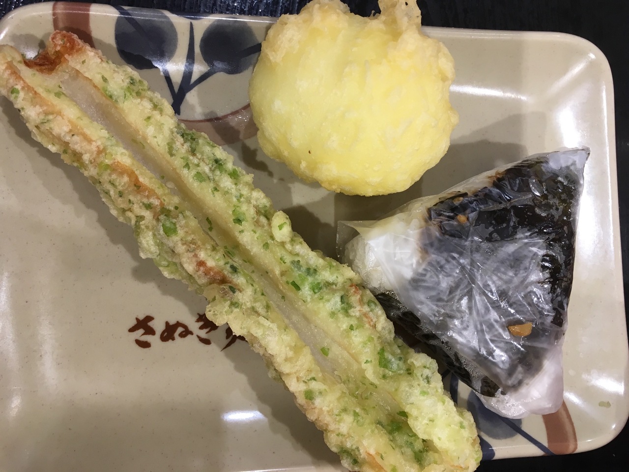 メインのうどんは安いですが、トッピングの揚げ物とおにぎりをついつい取りすぎてしまいます(^◇^;)