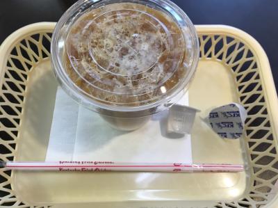 ベビーカーの子供連れで来店、イートインスペースはエレベーターなしの二階にあるようですが、レジがある一階に、1組用の椅子と机があり店内で食べられました。疲れていたので何かデザート的なものが食べたかったのですが、ケンタッキーはデザート的なものは取り扱いないのですね(^◇^;)カフェラテをいただきました。