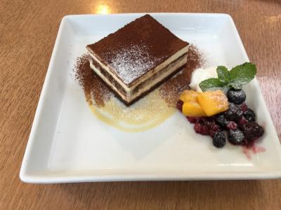 目の前のスターバックスよりは空いてそうだと思いこちらに入りました。テラス席なら空いていると言われテラス席へ。ベビーカーに乗せた子供連れだったので、むしろテラス席で良かったです。ケーキセットにして、ティラミスとアイスティーにしました。お酒もメニューにあり友達はモヒートを注文しました。ゆっくり時間を過ごせました。