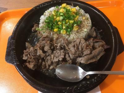 南砂町 ショッピングセンター「スナモ」のフードコートにあるペッパーランチです。とにかく肉が食べたかったようで夫が注文しました。店名通り胡椒が効いたお味でご飯がすすんでいるようでした。安い値段でお肉が食べられます。