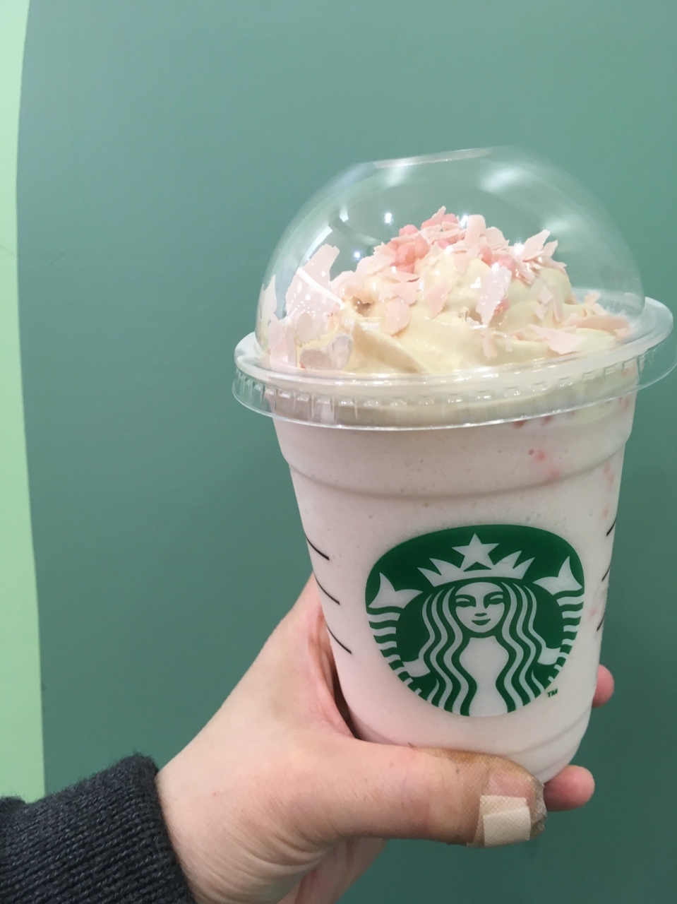 スターバックスはコーヒーショップですが、私は大抵コーヒー以外のものを注文しているような気がします。期間限定のさくらブロッサムクリームフラペチーノwithクリスピースワールを飲みました。プラペチーノは甘いけど無性に飲みたくなります。お味は桜餅を飲んでる気分、あられもトッピングされているから、和風感が増します。