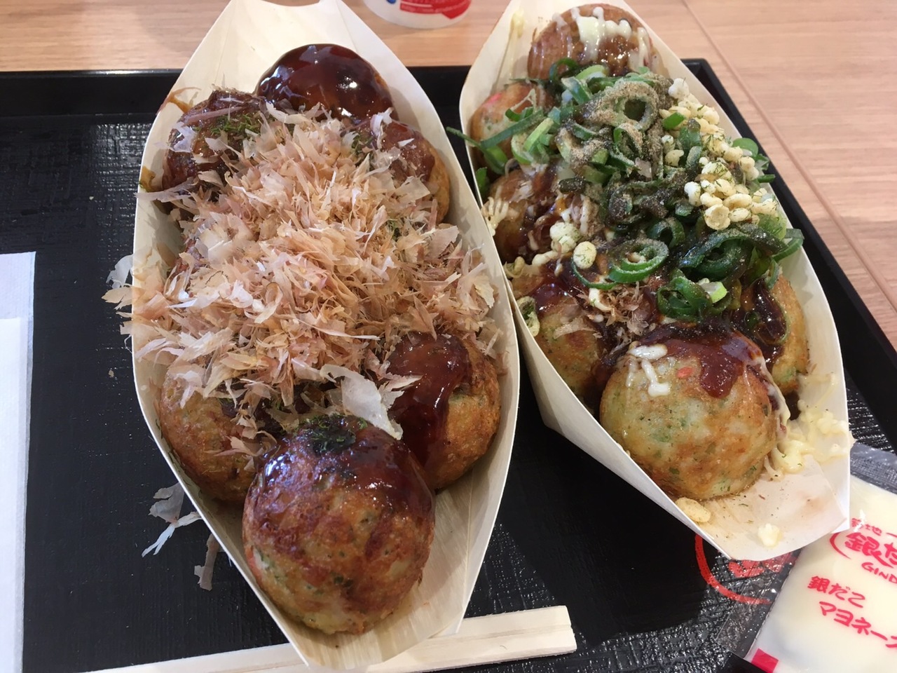 銀だこのたこ焼きは安定して、美味しいです。九条ネギを使った、贅沢ねぎマヨとスタンダードのたこ焼きを食べました。小腹がすいていたので、あっという間に食べてしまいました。隣に座っていた人が赤ちゃんにたこ焼きをあげていてびっくりしました。よく考えるとソースがかかっていない中身なら離乳食がわりになるなと。卵アレルギーがある我が子には無理だけど、卵使わないたこ焼きは自分で作ったら良いかも。