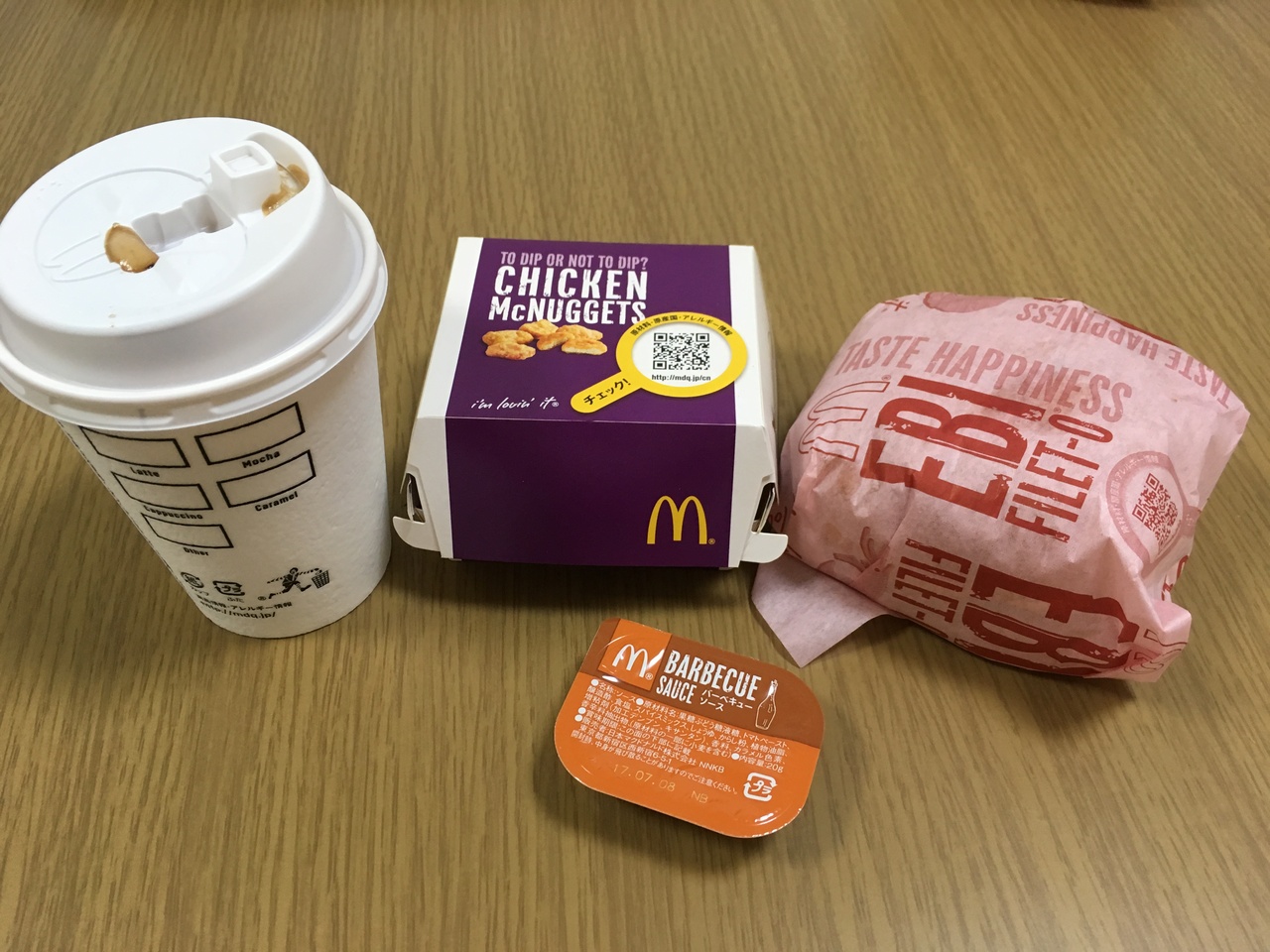 平日の夕方5時過ぎに行くと、学校帰りの高校生達が多かったです。エビフィレオセット、飲み物はカフェモカにしたら会計は720円、思ったよりお値段高い。テイクアウトならセットにせず単品でバーガーだけ買えば良かったと後悔。