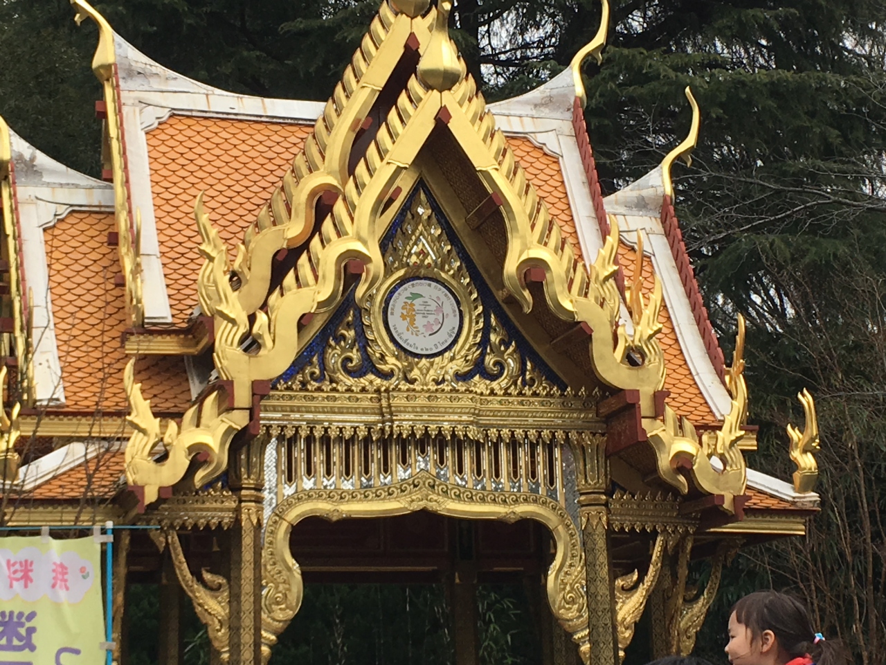 タイ修好 120周年を記念して、タイ王国から贈られたものだそうです。サーラータイとは4本の柱で四方を吹き抜きにした、憩いのための建物だそう。しかし真下にはいけないので憩いの場ではないような・・・。囲いなんか作らずベンチを置いて休憩できるようにしたら良いのにと思いました。