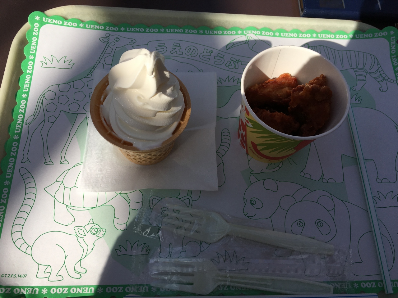 園内を回り疲れてたどりつく憩の場所という感じです。食堂内でも食べることが出来ますが、外にも椅子とテーブルがたくさん用意してあります。カレーなどの食事もできますが、小腹を満たす、ソフトクリーム、鳥唐揚げなどもあります。