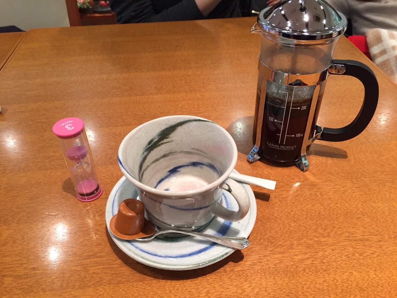 夫はプレミアムコーヒー。砂時計と一緒に運ばれてきて蒸らして呑むという本格的なコーヒーでした。- 旅行時期