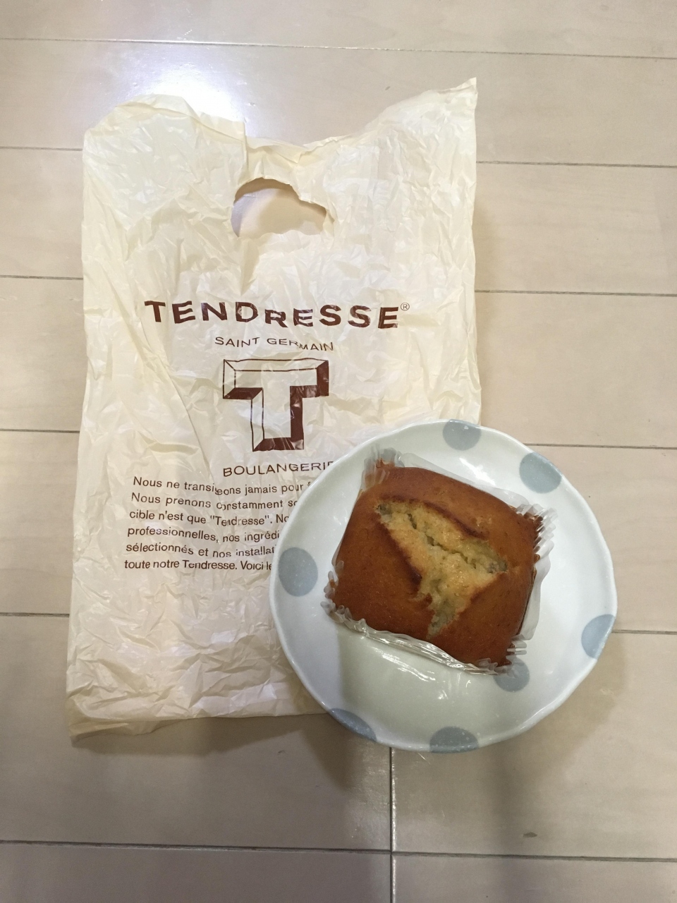 イートインもできますが、チャイルドチェアとか無さそうだったのでテイクアウトして、交通会館三階の屋外庭園で食べました。サンドイッチとバナナマフィンを欲張って買ったら、案の定サンドイッチでおなかいっぱいになりました。写真は家に持って帰って食べたバナナマフィンです。