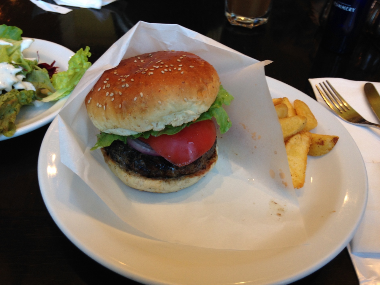 お昼を食べ損ねて、お腹がぺこぺこで来店。100パーセントビーフパテのハンバーガーを注文。セットの飲み物はコーヒーか紅茶しかメニューに載っていませんでしたが、ジュースはありませんか?と聞くとオレンジジュースに変更してくれました。妊娠しておりカフェインを避けていたのでありがたかったです。
