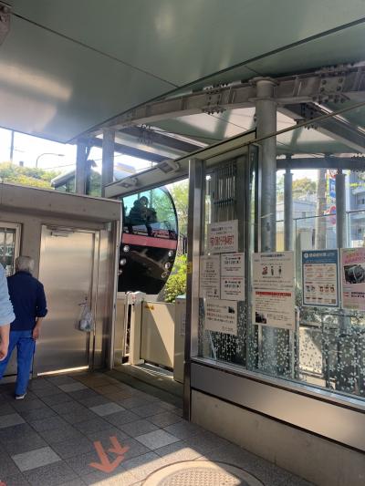 飛鳥山公園へ登る無料のモノレールです。もっと長い時間乗ると思ったら直ぐに到着しました。「アスカルゴ」という名前がついています。子連れや高齢者、障害のある方などみんなが安心に公園までたどりつける乗り物です。