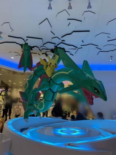 東京スカイツリータウンソラマチの4階にあるポケモンセンターです。てんくうポケモンのレックウザに乗ったピカチュウが出迎えてくれます。ぬいぐるみだけでもたくさんあり、お目当てのポケモンを探すのが楽しいです。