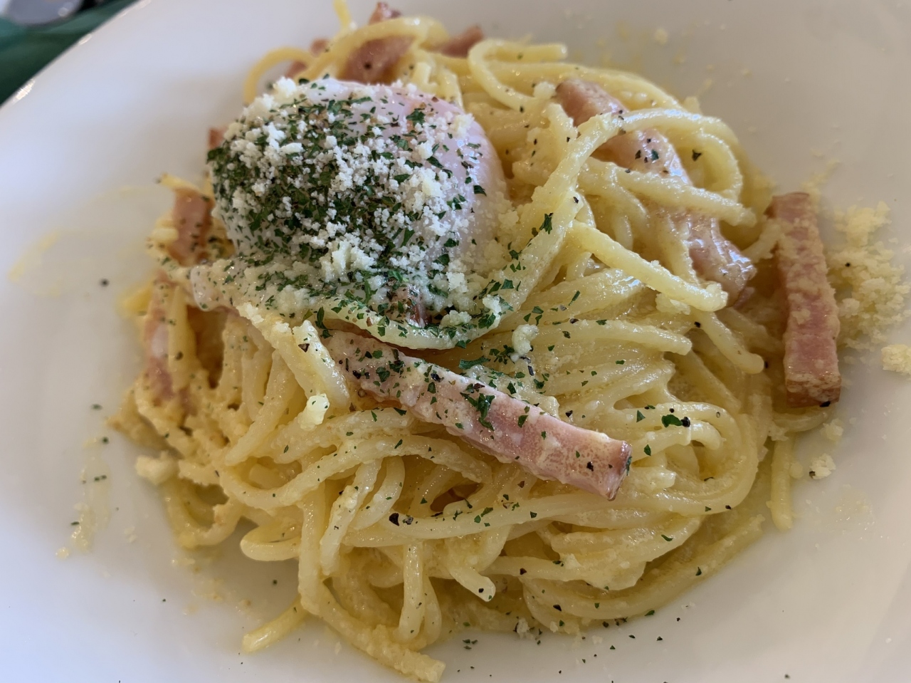 八景島シーパラダイスにあるイタリアンのお店です。八景島には食事ができるお店がたくさんあります。フードコートもあったりするのですが、子供が食べたいものがピザだったのでこちらのレストランを選びました。ポテトとコーンのマヨネーズピザ、カルボナーラ温玉のせ、バケツ盛りポテトを注文しました。子供が好きなラインナップです。