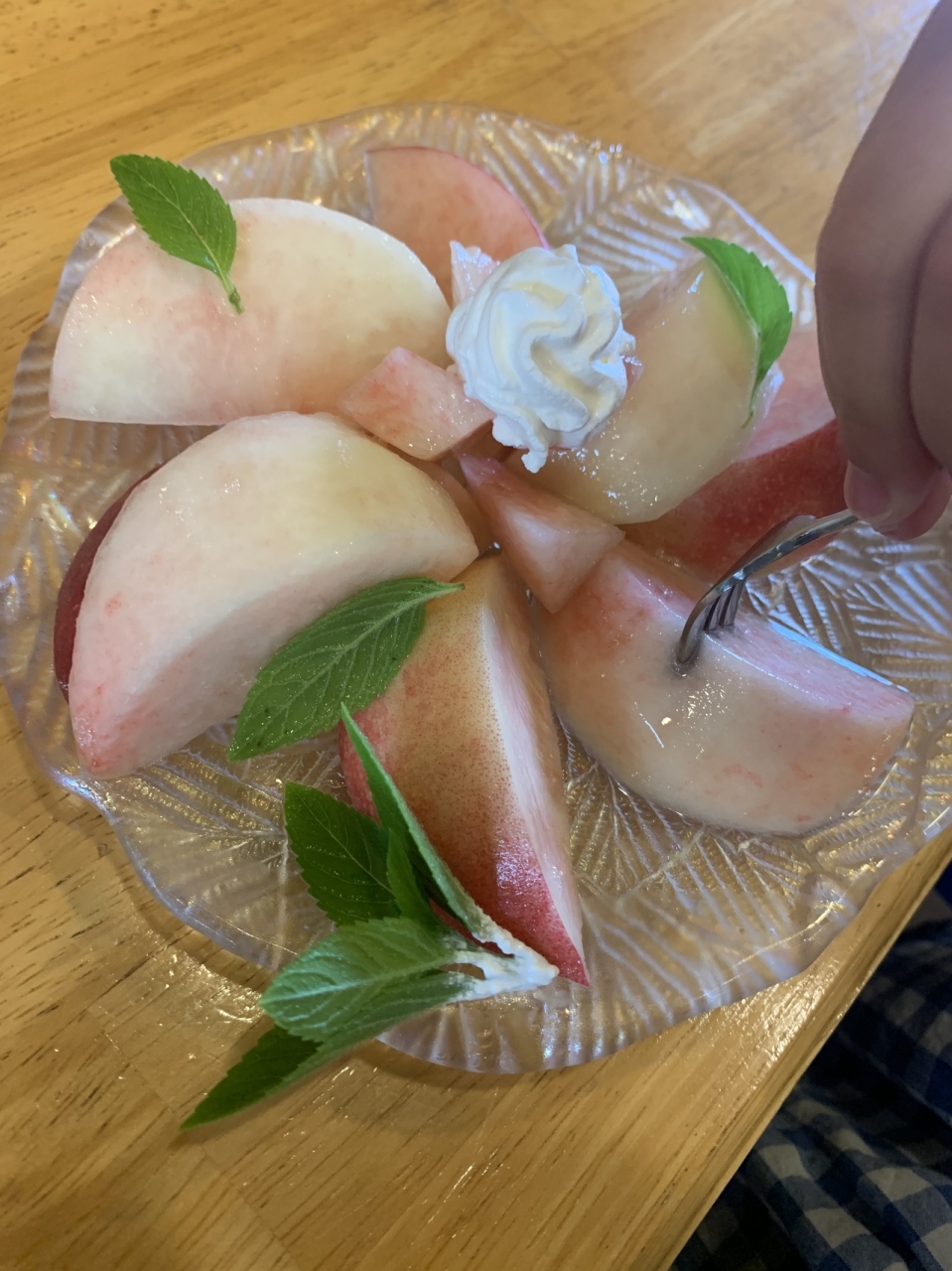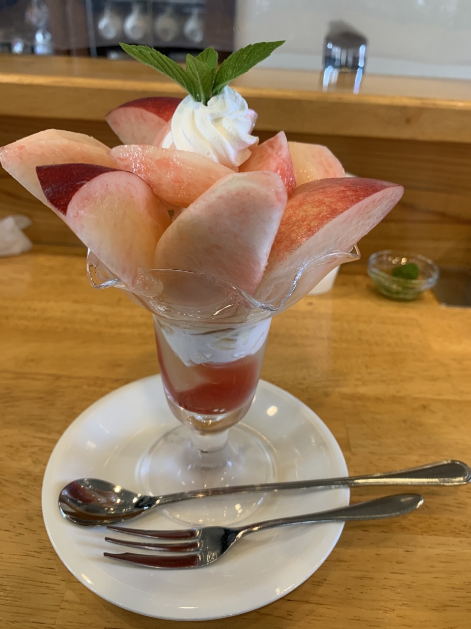 現在インターネットでの完全予約制です。以前訪れて美味しかったので再訪問しました。私は「麗しの桃パフェ」夫と子供は桃をたくさん味わいたいと「ピーチフラワー」にしました。皮まで甘くて美味しい桃を堪能しました。シャキシャキした食感の甘い桃大好きです。