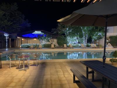古いホテルですが、清潔で綺麗なホテルでした。宿泊客はプールを利用できるのもよかったです。夜はプール周りがイルミネーションで飾り付けされており、ナイトプールも楽しめます。晩御飯はバイキングにしました。前菜、お造り等は机に置いてあり、他のものは自由にとりにいきます。牛ヒレステーキは1人一皿、引き換え券を渡して、その場で焼いてくれます。柔らかいお肉で最高でした。天ぷら、寿司も注文したらその場で作ってくれます。全部食べられなくて残念(´;Д;`)デザートも豊富でした。