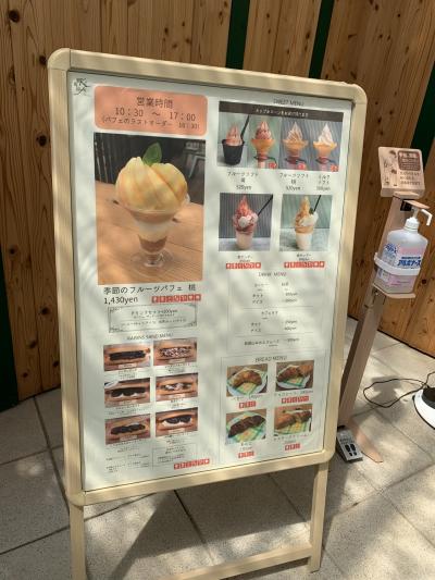 「笛吹川フルーツ公園」内にあるレーズンサンドが有名な「葡萄屋kofu」のカフェです。「桃サンデー」と「苺フルーツソフト」を食べました。季節のフルーツパフェ(この時は桃)もあります。遊び疲れた子供と付き合う大人にも美味しいスイーツでした。