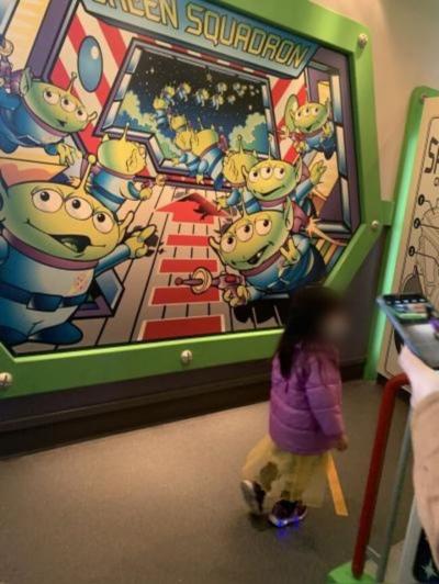 トイストーリーの世界を体験できます。バズ・ライトイヤーと共にスペースレンジャーの一員として小型宇宙船スペースクルーザーに乗って「アストロブラスター」で悪の帝王ザーグと戦います。Zマークを当てると得点がとれます。狙いが定まらず難しかったです。