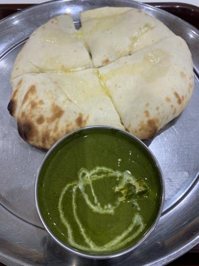 イオンモール川口前川のフードコートにあるインドカレーのお店です。チーズナンとほうれん草カレーのセットにしました。ほうれん草カレーの緑色が野菜を摂取してる感が視覚的にも感じられて好きです。チーズがたった入っていて美味しかったです。