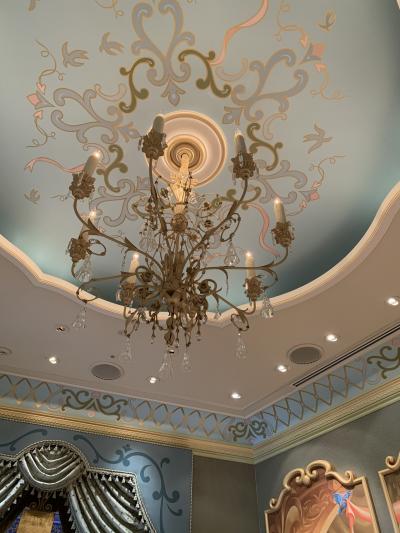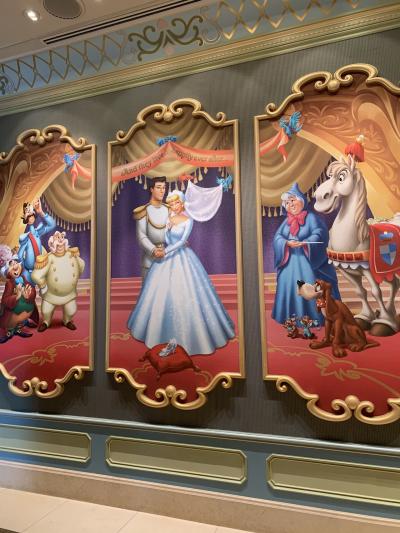 以前訪れた時はやっていませんでしたが、再開されていました、初めてシンデレラ城内部に入りました。シンデレラを題材にした絵画やジオラマ、アート作品が展示されています。エレベーターで3階へ行くとガラスの靴や玉座があります。