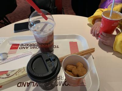 トゥモローランドにあるディズニーランドで一番大きなレストランだそうです、席数も多いので席にも座ることができました。ミッキーマウスの形のチキンナゲットを食べました。見た目がかわいいだけでなく味も美味しかったです。