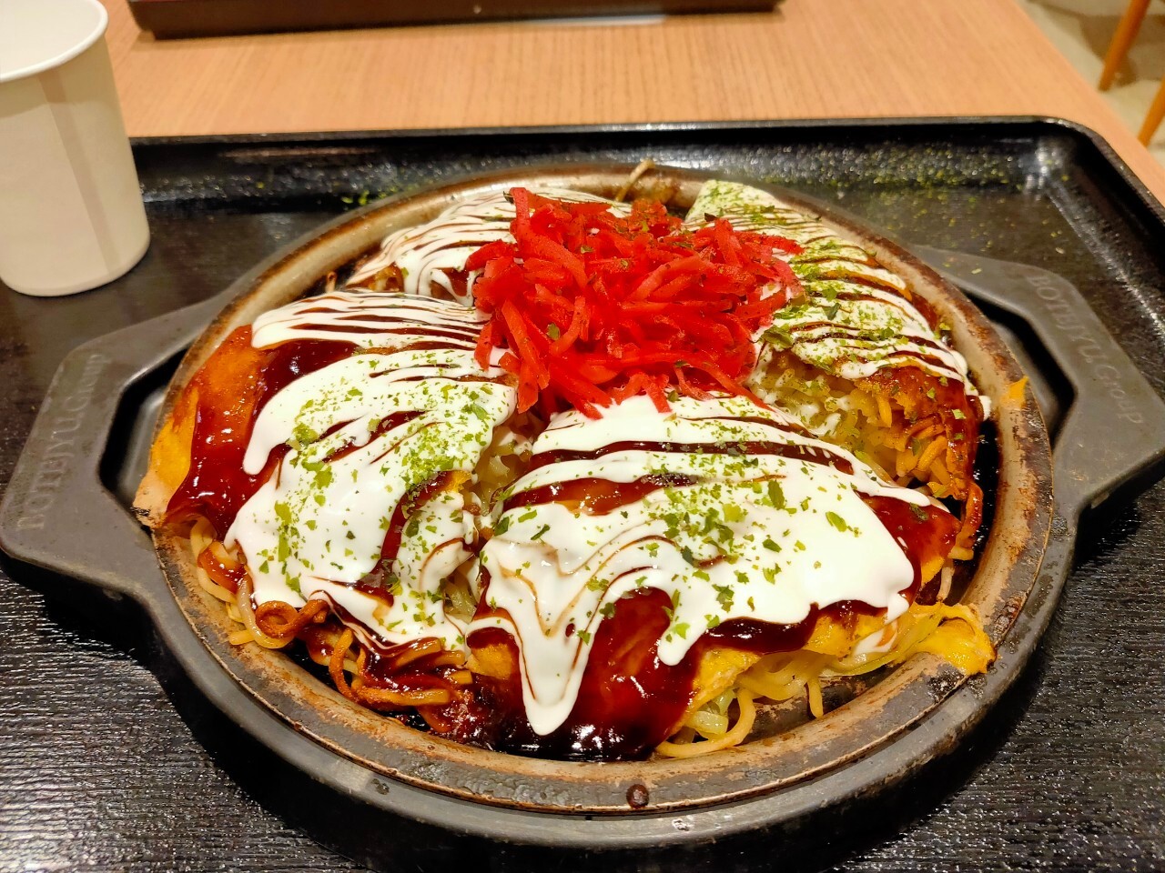 守谷サービスエリア上りフードコートにある、お好み焼き屋です。大阪のお好み焼き専門店ですが、広島焼きもあります。夫は大阪出身だけれど、広島焼きが好きで、またこちらで広島焼きを食べていました。焼きそばが入るからボリュームが増すのが良いのか⁈美味しそうに食べていました。