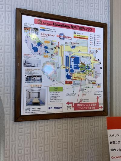 スパリゾートハワイアンズチケットがついたプランで泊まりました。大人2人、子供1人で一部屋。子供はベッド有りにしたら、セミダブル+簡易ベッドでした。簡易ベッドがとっても硬いベッドで結局3人でセミダブルに寝ました(^◇^;)大浴場があり、女風呂は暗証番号の鍵があるのは安心できました。朝食のブッフェはコロナ対策は消毒ぐらい、通常営業です。従業員が常についているわけではないので、マスクなしの客が大声で喋りながら食事を盛っていて、ツバかかりまくってました。