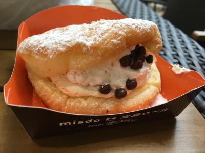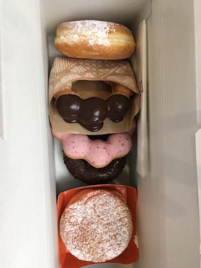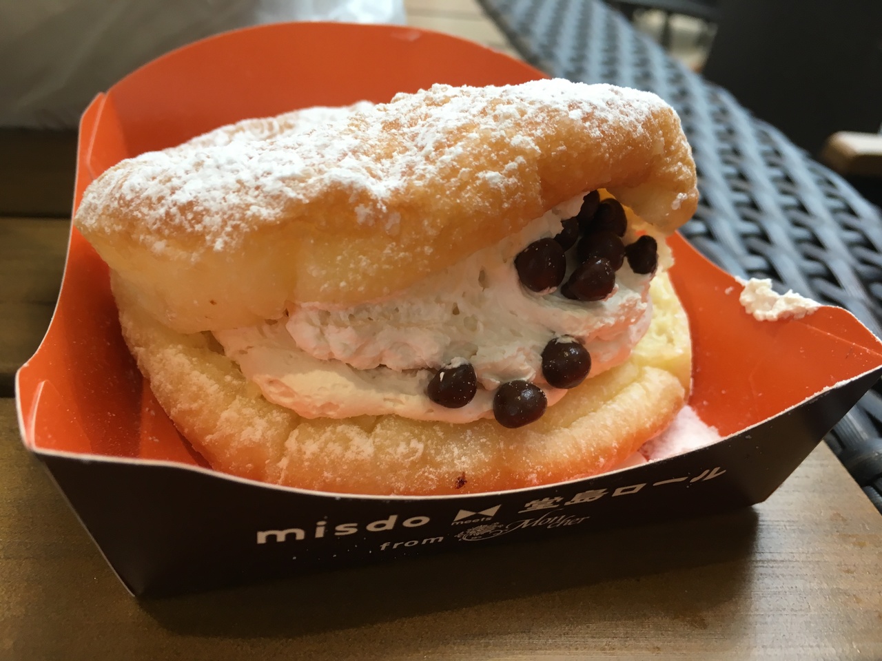 堂島ロールコラボのドーナツが食べたくて訪れました。タイミングが悪く店内のイートインスペース空きがなく、屋外の席でテイクアウトして食べました。ドーナツが出来上がるタイミングも悪く、堂島ミルククリームが一つしか残っていませんでした。コラボドーナツは夫に譲って私は通常メニュードーナツをいただきました。とても人気があるみたいで、並ぶ先からなくなるみたいです。