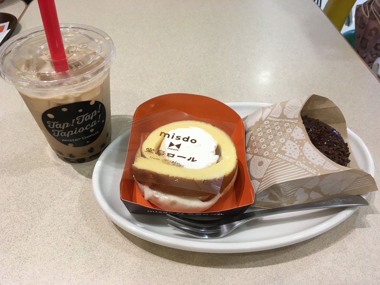 ミスドにもタピオカミルクティがあるのがわかって飲んでみました。堂島ロールコラボドーナツもタイミングよくたくさん残っていて、やっと食べることができました。タピオカミルクティをはタピオカミルクティ専門店と変わらないクオリティです。堂島ロールコラボドーナツは私がハードルを上げすぎてしまったのか、あまり美味しいと思いませんでした(^◇^;)