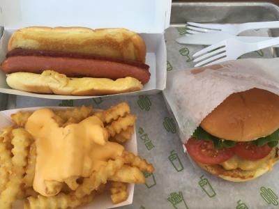 神宮前店でスモークシャックを食べたら何だか辛味があり、あまり美味しさを感じられなかったので、今回はスタンダードなシャックバーガーを注文しました…肉の臭みを感じ美味しくない(^◇^;)私には高級バーガーの美味しさが結局わからず。子供が食べた牛肉のホットドッグが1番美味しかったです。