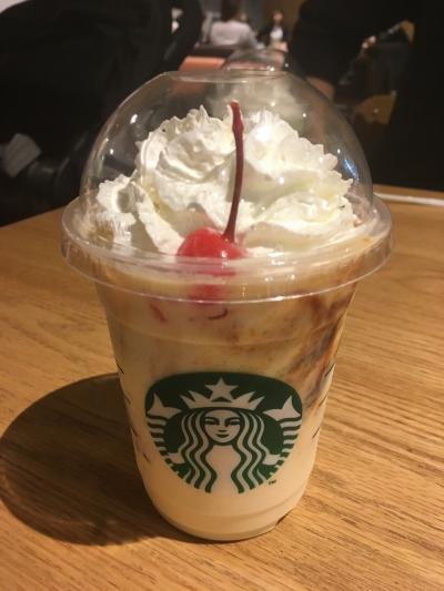 地下一階にあるので通りがかりで人が入らず、あると知らないと人が入らないようで意外と穴場で席が空いています。しかも広いのでゆっくり過ごせます。プリンアラモードフラペチーノを注文しました。カロリーは高いだろうけど歩き疲れていたので、構わず食べました(^◇^;)