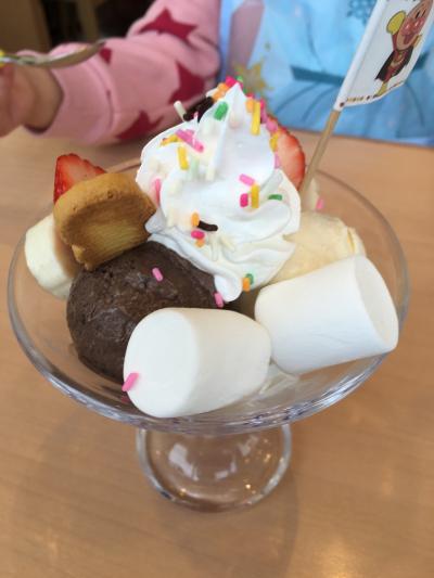 確実に座って休憩がしたかったので、こちらに来ました。機械に人数を入力して整理券を手に入れたら、だいたいの呼び出し時間がわかります。そんなに待ち時間はありませんでした。「みんなで食べようびっくりピザ」と「アンパンマンキッズトリプルサンデー」を注文しました。食事系は⁈な味ですが、流石甘いものは美味しいです。ピザも美味しかったです。