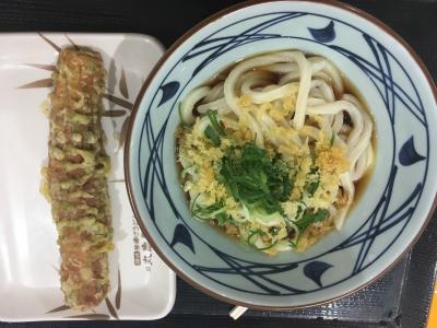 イオンモール川口前川のフードコートにある丸亀製麺です。この日はさっぱりしたものが食べたくて、ぶっかけうどん冷にしました。でもちくわの磯辺揚げは大好きなのでとってしまいました(^◇^;)天カスにたまに、たま玉ねぎらしきものが混じっているのが良いですね。