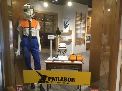 機動警察パトレイバーの広告ポスター展を見るために訪れました。平日の午前中の有楽町マルイは人がぜんぜんいません、ガラガラです。子供をベビーカーに乗せて訪れましたが、人がいないのでゆっくり見ることができました。昼時になると食事をするレストランは混み合ってました。