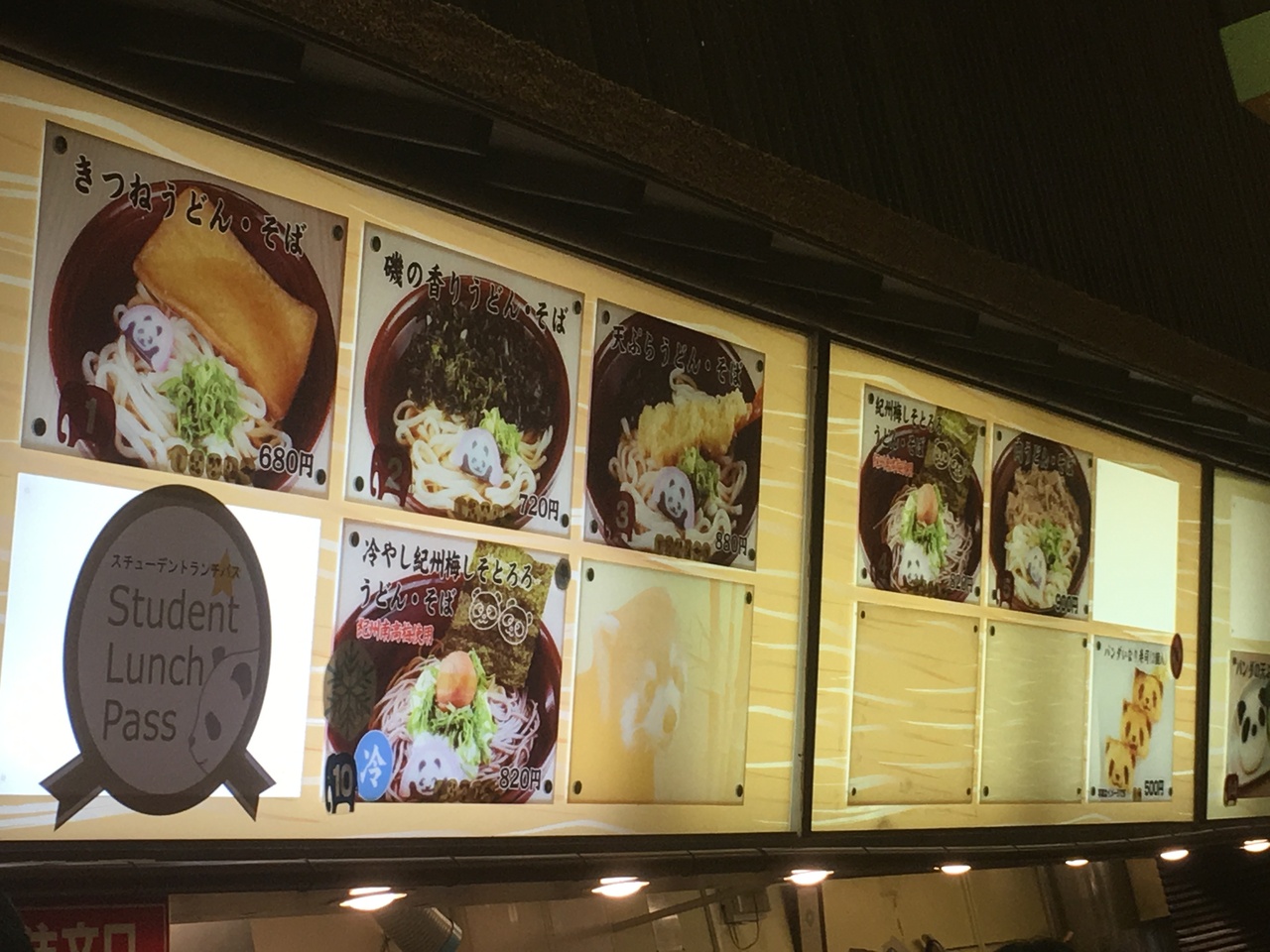 アドベンチャーワールドのなかのエンジョイドーム フードコートで、うどんとそばを食べました。遊園地内のレストランにしては値段が安いと思います。パンダのかまぼこがのせてあるだけだけど、特別感があります。私は紀州梅しそとろろそばにしました。さっぱりしていて美味しかったです。