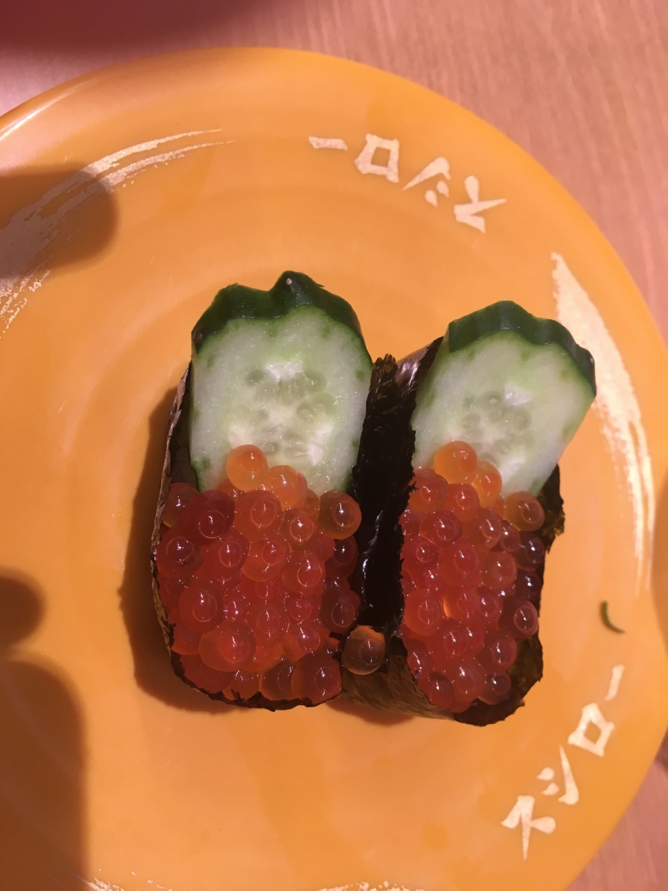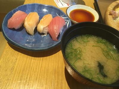 お寿司を安くお腹いっぱい食べるならスシローは良いですね。10連休中だったので出発前17時ぐらいに予約していったら、混む前だったらしく、直ぐに番号を呼ばれていて間に合いませんでした。少し待ってから席に座ることができました。ほぼ全ての皿が100円なのでお金のことをあまり考えず食べられるのが楽です。いくらも気にせず食べられました。