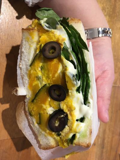 本と雑貨を売っているお店に併設されたカフェがあり、本屋に置いてある本を購入しなくても自由に読んでも大丈夫です。90分の時間制限はありますがゆっくりできると思います。パンプキンサンド480円を食べました。チーズとパンプキンが絶妙なバランスで美味しかったです。