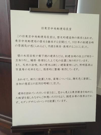 KITTEの4階にある旧東京中央郵便局長室を再現している部屋です。窓から東京駅を眺めることができます。椅子と机がおいてあり休憩もできますが、この空間で手紙を書き、置いてある木製のポストに投函するのが正しい利用方なのかもしれません。