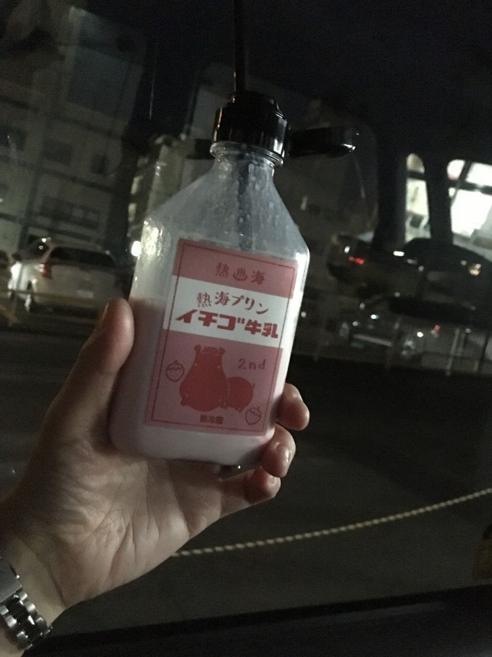 テイクアウトだけだった熱海プリンが2ndではカフェスペースがあり、その場でプリンを食べることができるようになりました。しかし私達は時間がなくてテイクアウトしました(^◇^;)いちご牛乳などの飲み物はイートインや飲み歩き用らしく賞味期限の関係かストローを刺しての提供でした。