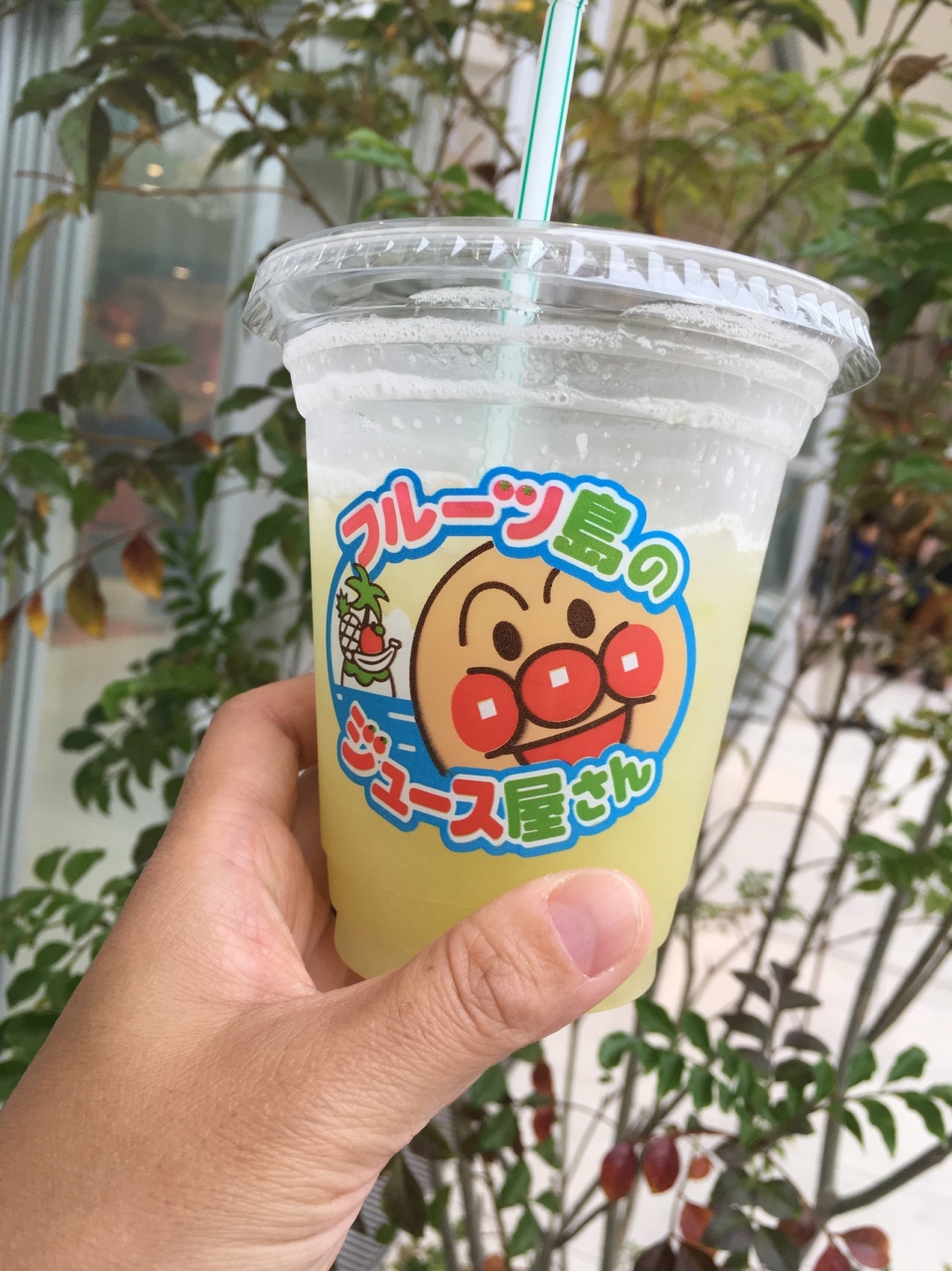横浜アンパンマンこどもミュージアム&モールの無料スペースのモールにあるジュース屋さんです。アンパンマンの可愛い容器にジュースが入っています。メロンジュースを注文しました。私には甘すぎましたが、子供はゴクゴク美味しそうに飲みました。