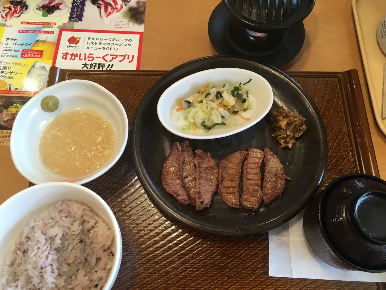 期間限定の牛タン焼き定食を食べました。白菜の浅漬け、とろろ、甘辛味噌までついています。テールスープではなく味噌汁だけど充分満足できます。牛タン6切れと9切れがありますが、6切れのほうでお腹いっぱいになりました。期間限定ではなく定番化して欲しいです。