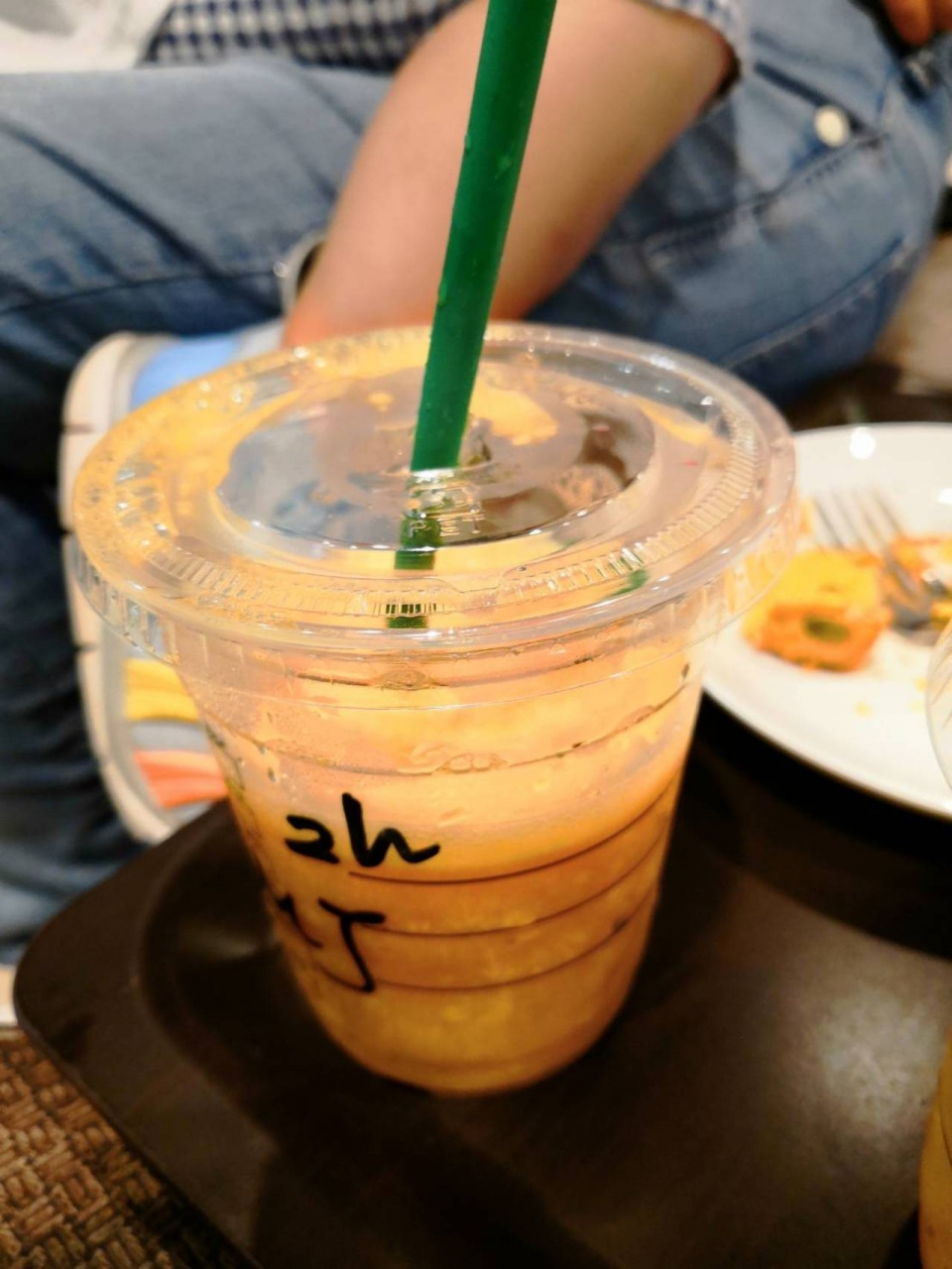 マンゴーパッションティーフラペチーノを飲みました。マンゴーとパッションフルーツ、ハイビスカスティーと氷をブレンドしたフラペチーノは甘ったるくなく爽やかな感じがしました。フラペチーノは大抵クリームがのっていますが、こちらにはクリームがのってないのでしつこい感じがしなかったのかもしれません。