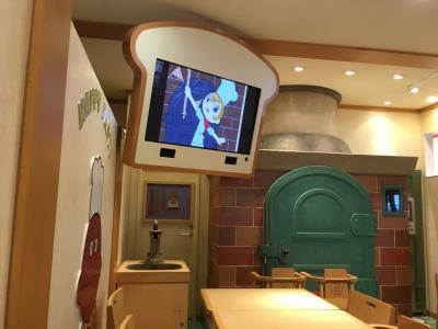 どのキャラクターのパンも可愛いらしいし、味も美味しいし、普通に美味しいパン屋さんです。今回は一階で買ったパンを二階のイートインスペースで食べました。イートインスペースは飲み物注文で利用できます。二階にはジャムおじさんのパンの釜もあり、アンパンマンだらけの空間で楽しくパンを食べました。