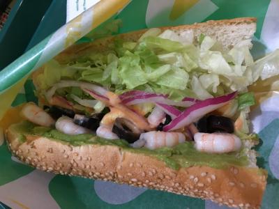 イオンモール川口前川のフードコートにあるサブウェイです。美味しいサンドイッチが食べたくなって食べることにしました。えびアボカドにしました。野菜多めと言ったのに盛りが悪いし、追加はオリーブだけというのも、3回ぐらい聞き直されました。客は私しかいなかったし、焦る必要もないのに謎の接客でした。