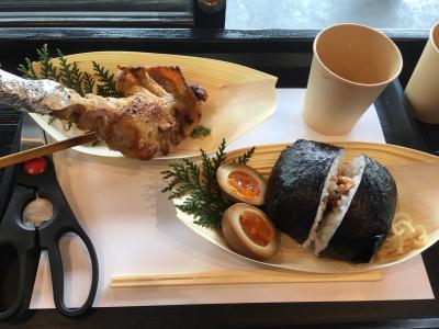 炭火で焼いた鳥、ばくだんおにぎり、味玉を食べました。鳥の味は塩とタレを選べます。