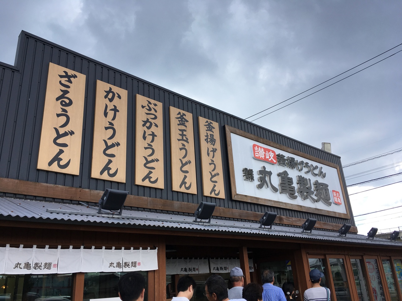 伏見にある路面店の丸亀製麺です。8月13日のお昼12時に来店すると店の外まで行列ができていました。お盆休み中なので私達もですが、家族連れが多かったです。やめようかな?と一瞬思いましたが、意外と待たないで注文できました。回転率が良いので、席にも直ぐに座れました。