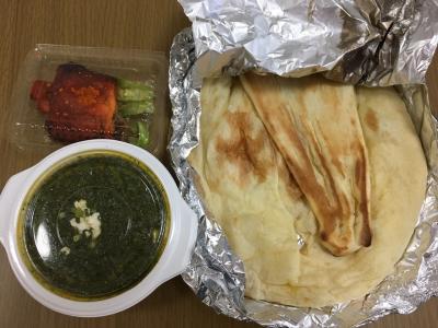 デリバリーで時々利用します。注文して届くまで速いし、丁寧に届けてくれます。今回はタンドリーチキンとパニールとほうれん草カレーを食べました。カレーを注文するとナンまたはサフランライスは無料でついてきます。チーズナンやゴマナンなどは追加料金がいりますが注文できます。夫はバターカレーとチーズナンにしました。チーズナンがとても美味しいらしく料金追加でも頼むべきだと力説していました。私はタンドリーチキンも食べたかったので今回は普通のナンにしました。