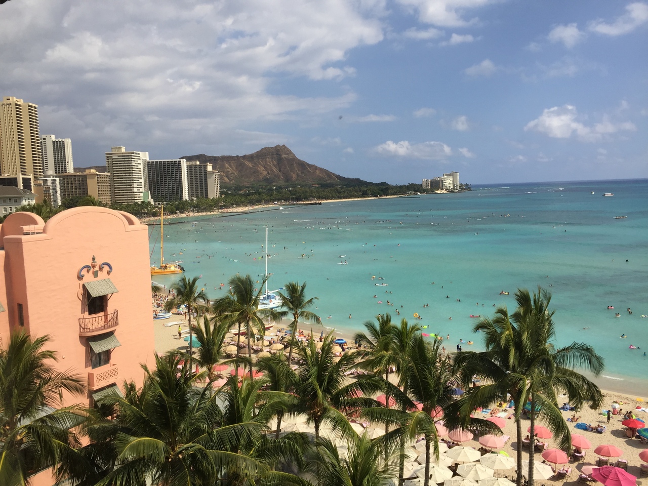 ラナイはなく窓も開きませんが、目の前に広がる真っ青な空と海!ダイヤモンドヘッドも良く見えました。