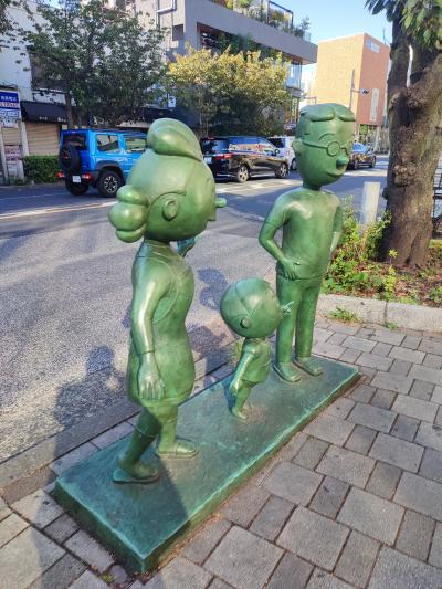桜新町駅を降りて、少し歩くと、サザエさん一家の銅像やのぼりがあります。サザエさんのアニメの世界とは少しほど遠い雰囲気ですが、世田谷の住宅地ですね。