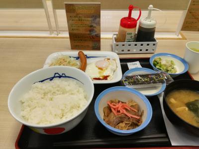 とても美味しい松屋の朝食です。酒々井PAでは店員さんが持ってきてくれるスタイルではなく、セルフのお店です。