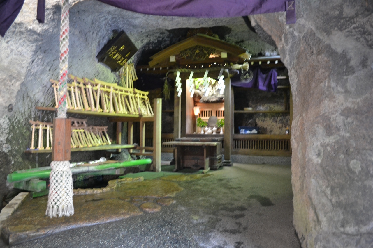 ちょっと暗いトンネルをくぐると、そんなに大きくない弁天様があります。