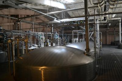 工場見学では、なかなか凝った映像を見てから、タンクやパッケージングの工程を見ることができます。